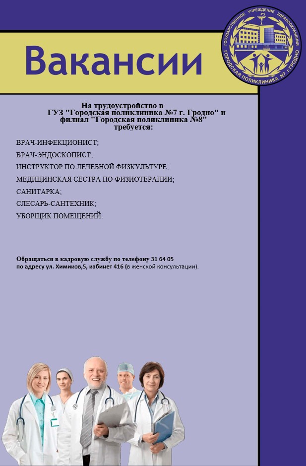 Обращаться в кадровую службу – ГУЗ ГП №7, кабинет 416 женской консультации