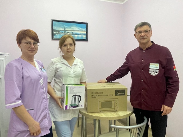 В рамках Недели нулевого травматизма, по ходатайству администрации профсоюзным комитетом учреждения оказана спонсорская помощь в оснащении всех комнат приема пищи 7 поликлиники необходимым оборудованием. А это 17 электрочайников и 3 СВЧ-печи.